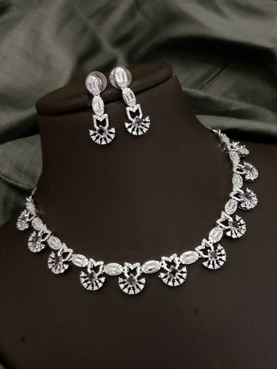 Regal Radiance Purple AD Necklace Set – Sparkling Symphony with a Modern TwistRegal Radiance AD Necklace Set – Sparkling Symphony with a Modern Twist