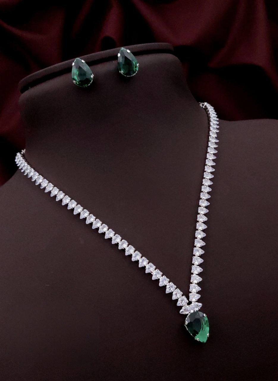 Teardrop American Diamond Necklace Set with Earrings – Emerald GreenTeardrop American Diamond Necklace Set With Earrings – Multiple Gemstone Colors